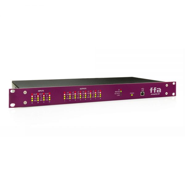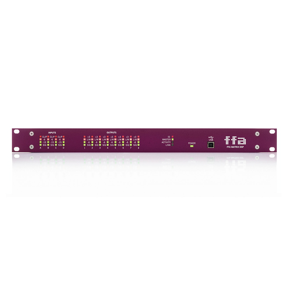 FFA MATRIX DSP cung cấp âm thanh hiệu suất cao nhưng tiết kiệm chi phí điều khiển qua Ethernet bằng PC, MAC hoặc Apple I PAD. Mặt trước có đo phản hồi tất cả các kênh nhưng không có nút điều khiển.