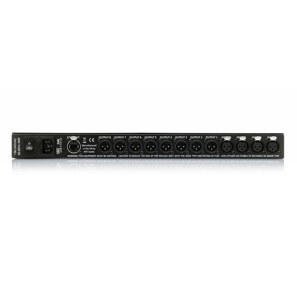 Thiết bị này có ma trận đầu ra của tất cả các kênh và có 4 đầu vào âm thanh cân bằng XLR và 8 đầu ra âm thanh cân bằng XLR