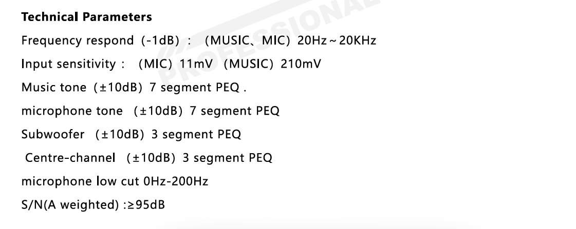 - Âm nhạc, âm sắc micrô sử dụng 7 đoạn PEQ được điều chỉnh.