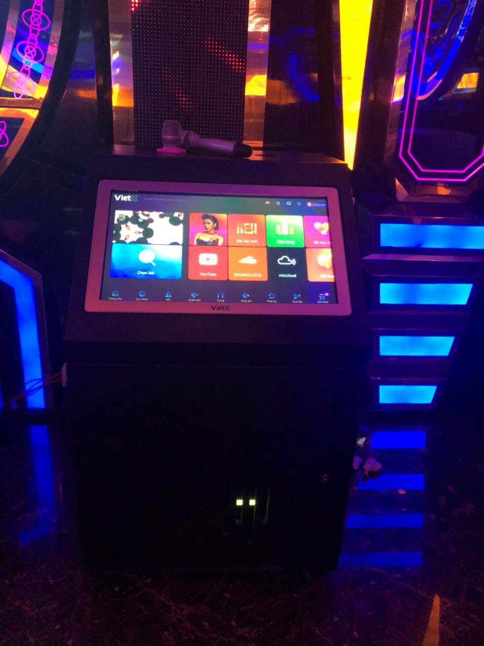 Tủ gỗ chắc chắn, tủ tích hợp được màn hình cảm ứng  21,5 inch, 22 inchs của các đầu karaoke hiện nay