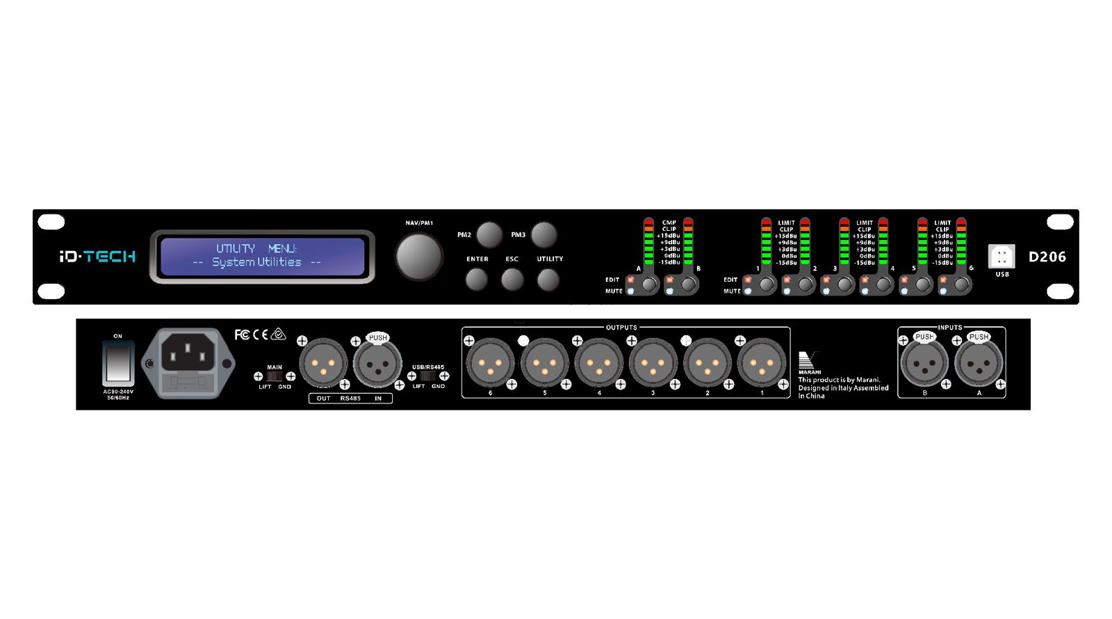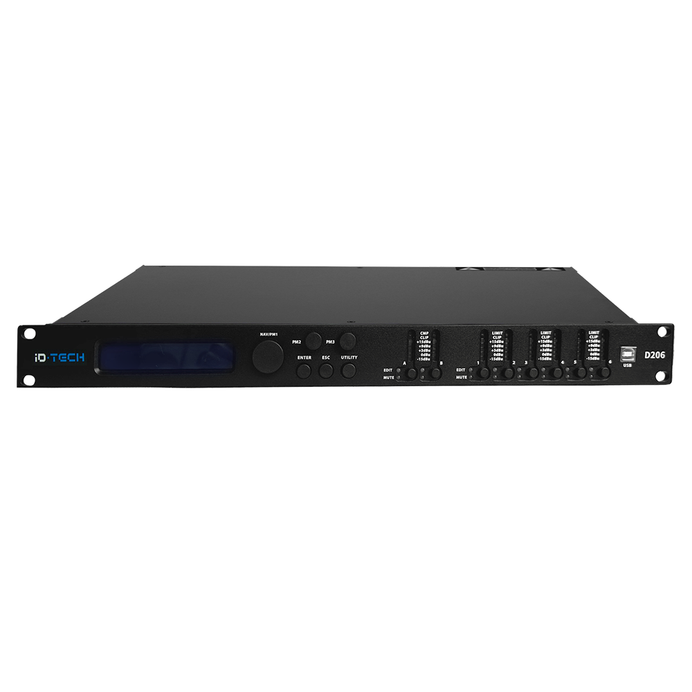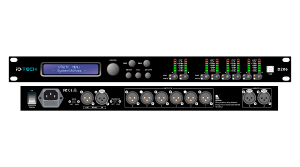 • D206 là thiết bị kỹ thuật số quản lý hệ thống âm thanh với 2-in / 6-out. 2 đầu vào analog và 6 đầu ra analog được thiết kế DSP mạnh mẽ và bộ chuyển đổi AD/DA 24 Bit.