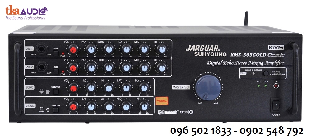Amply Jarguar Suhyoung KMS 303 Gold Classicamply karaoke cao cấp chính hãng Hàn Quốc, mang lại âm thanh mạnh mẽ, mượt mà và trung thực – lựa chọn hàng đầu cho dàn karaoke gia đình hoặc kinh doanh.